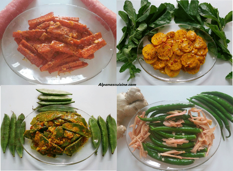 Achars are flavour enhancer of any meal specially in winter.The seasonal vegetables pickles are very tangy and spicy in taste.Try these simple instant seasonal pickles which most enjoyed with stuffed parathas.