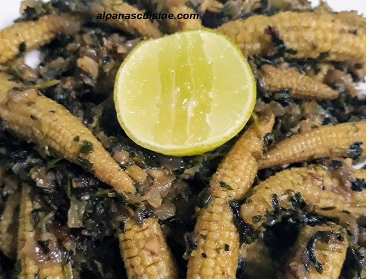 Methi Makai(Baby Corn) is  North Indian Side dish. Methi leaves(Fenugreek leaves) are very well liked by Indian in their native cuisines and almost treated as a wonder component of Indian food preparation. Baby corn has lower carb count then normal corn by  rich in fibre and high in potassium and folic acid.When baby corn cooked with Fenugreek leaves and with some herb and spices make it more tasty.